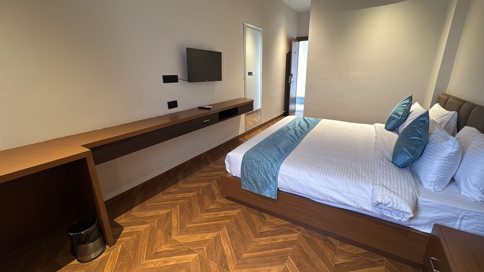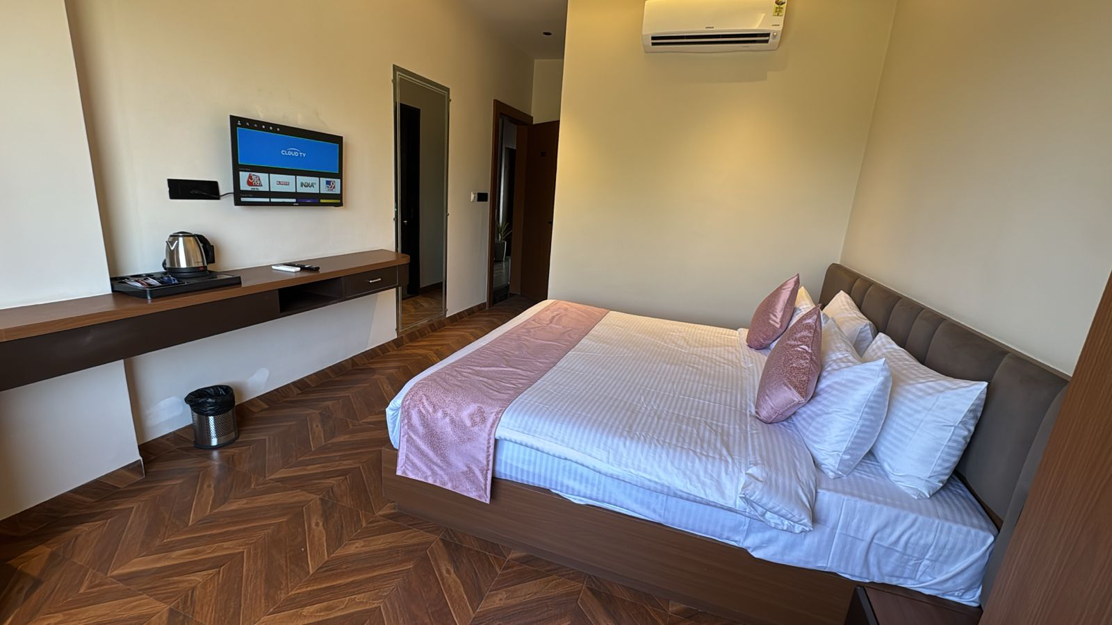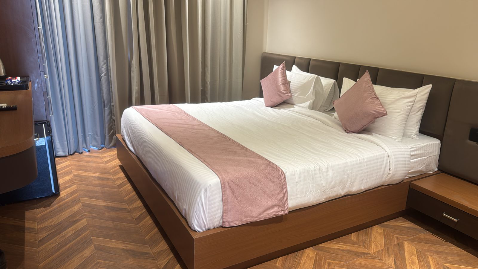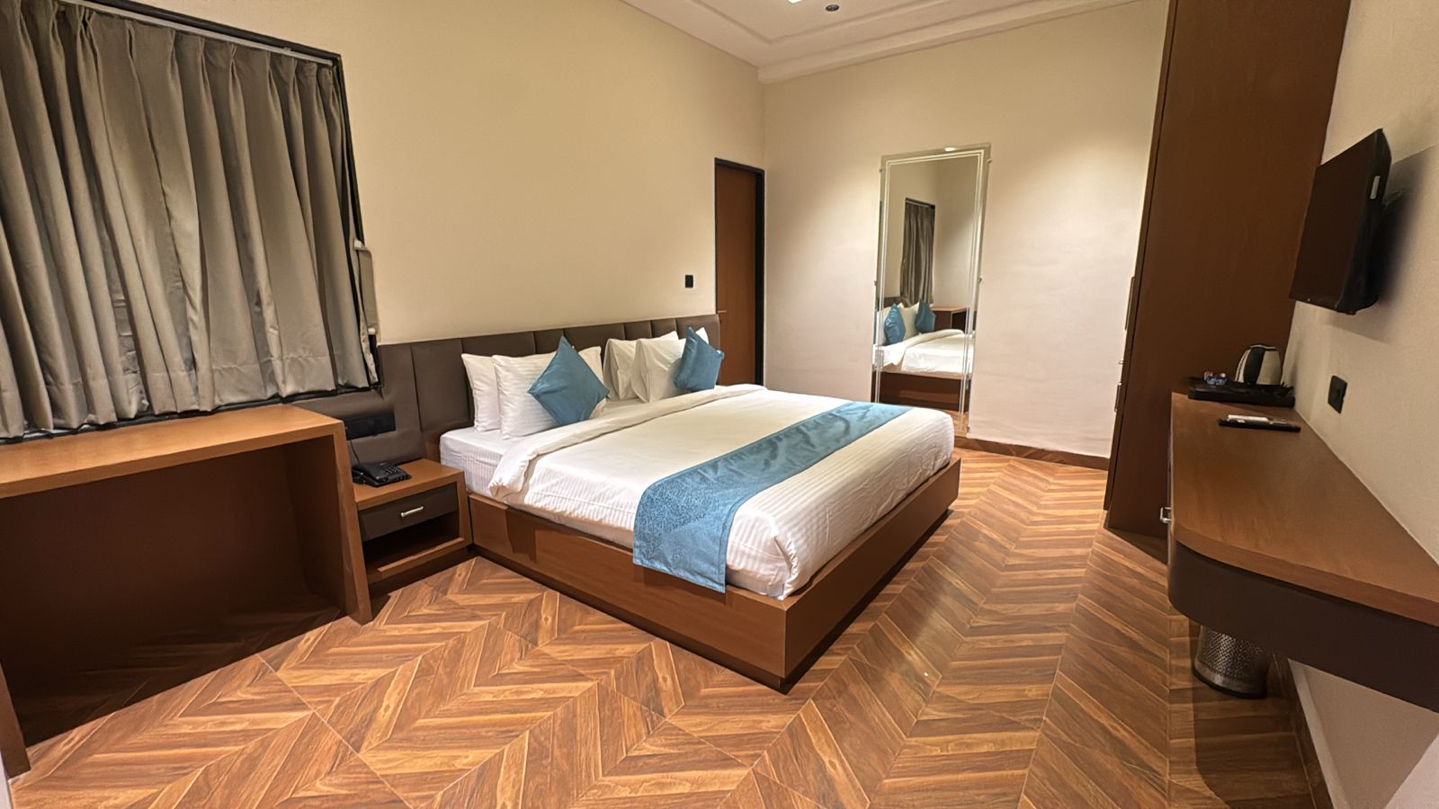 Experience elevated comfort and elegance in our Super Deluxe Room, thoughtfully designed to offer a perfect blend of luxury and relaxation. Featuring spacious interiors with stylish décor, the room provides a warm and inviting ambiance ideal for both leisure and business travelers. Guests can unwind on a plush bed and enjoy modern amenities such as air-conditioning, LED TV, high-speed Wi-Fi, a tea and coffee maker, and a mini-fridge for added convenience. The room also includes a well-appointed attached bathroom equipped with quality toiletries and modern fittings, ensuring a refreshing experience. Whether you are planning a peaceful getaway or a comfortable extended stay, the Super Deluxe Room promises a delightful and memorable stay with enhanced comfort and premium facilities.
