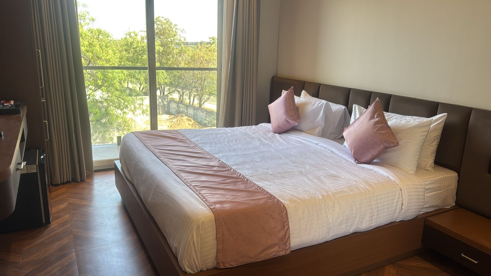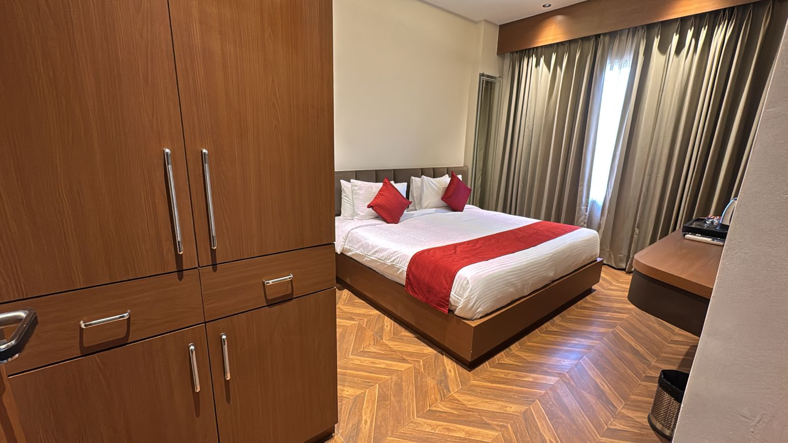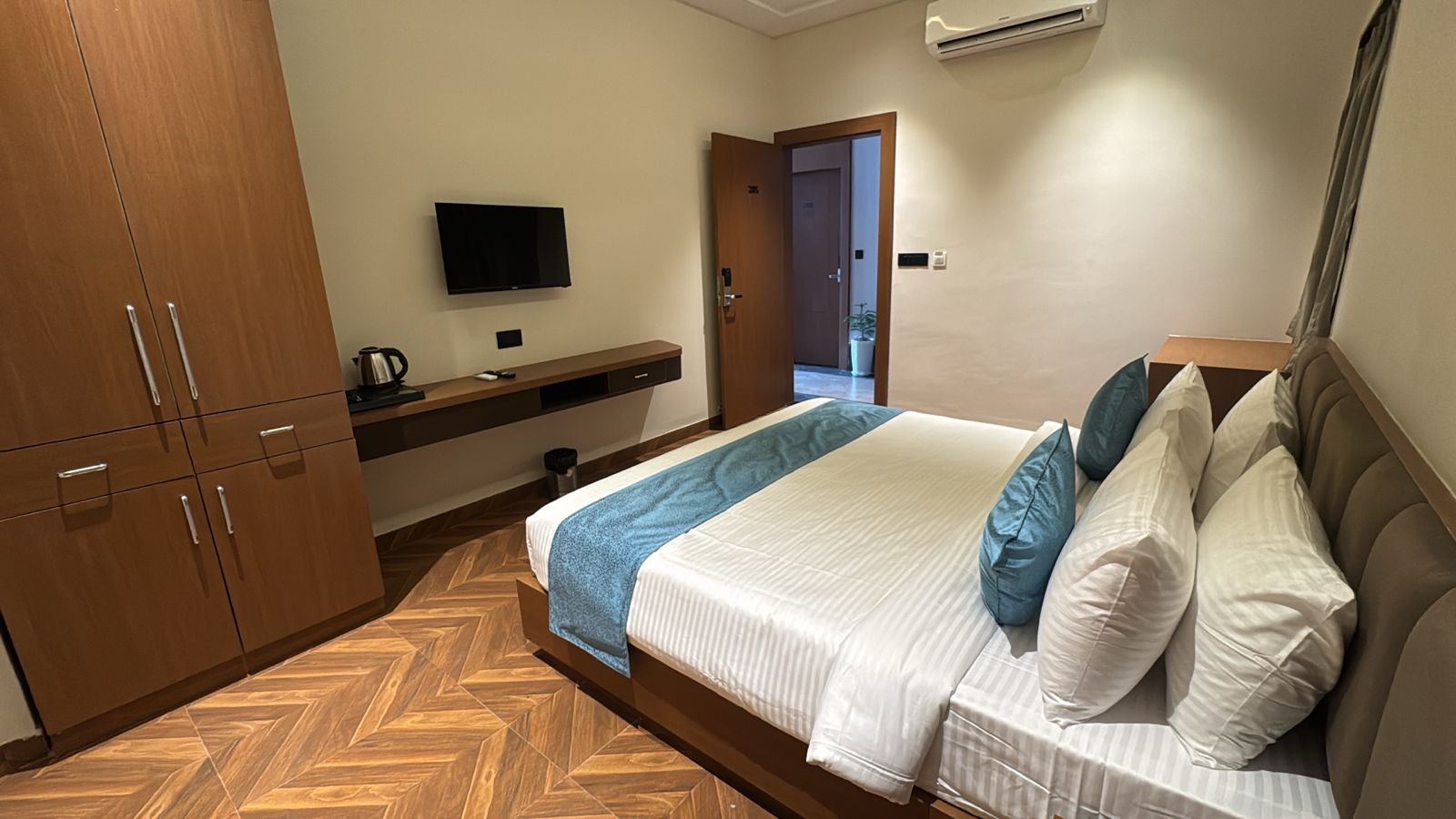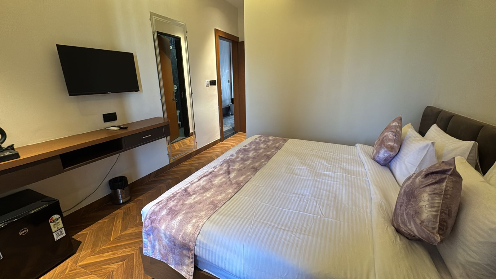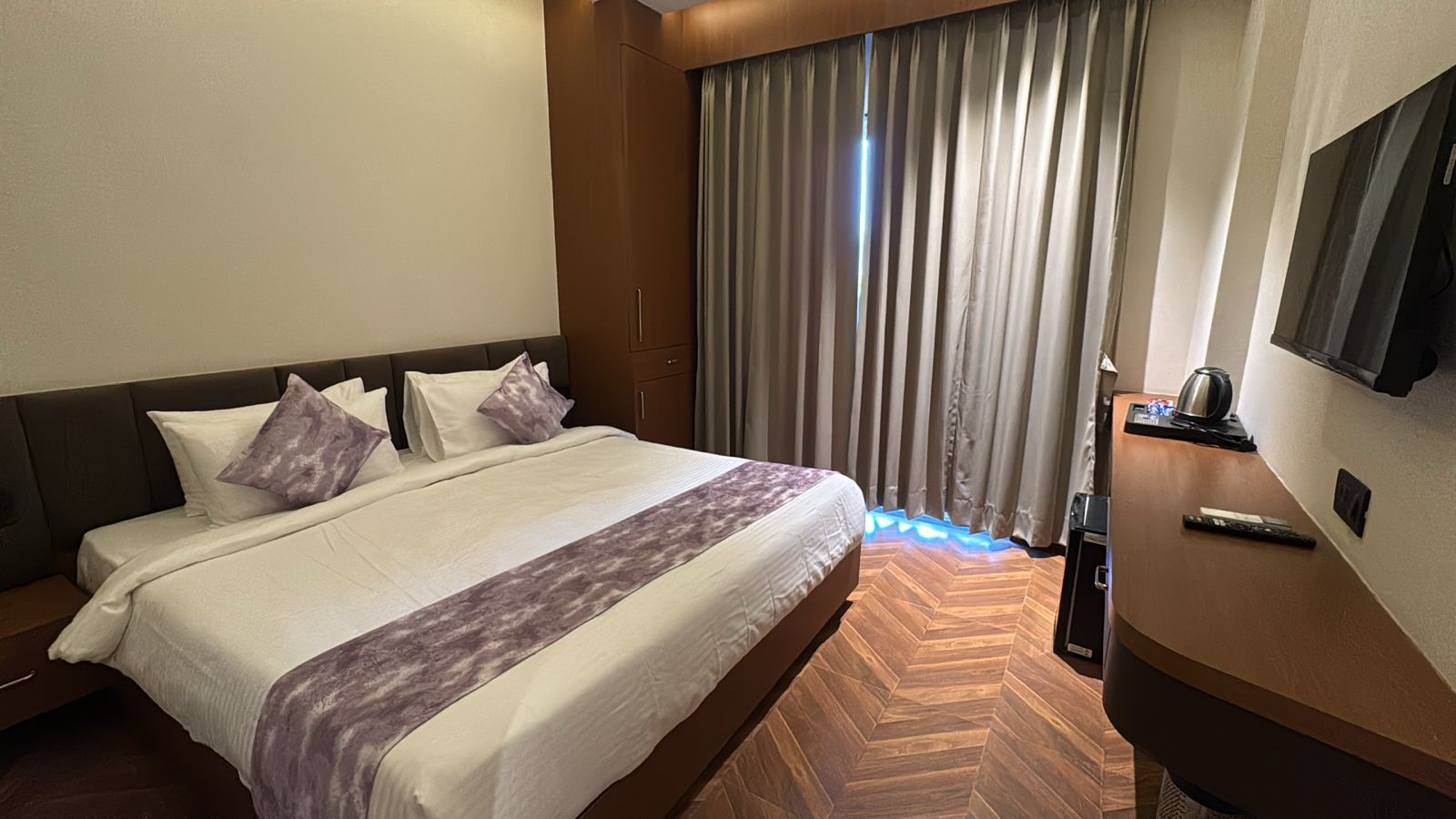 Experience elevated comfort and elegance in our Super Deluxe Room, thoughtfully designed to offer a perfect blend of luxury and relaxation. Featuring spacious interiors with stylish décor, the room provides a warm and inviting ambiance ideal for both leisure and business travelers. Guests can unwind on a plush bed and enjoy modern amenities such as air-conditioning, LED TV, high-speed Wi-Fi, a tea and coffee maker, and a mini-fridge for added convenience. The room also includes a well-appointed attached bathroom equipped with quality toiletries and modern fittings, ensuring a refreshing experience. Whether you are planning a peaceful getaway or a comfortable extended stay, the Super Deluxe Room promises a delightful and memorable stay with enhanced comfort and premium facilities.